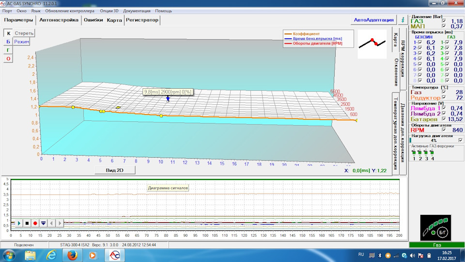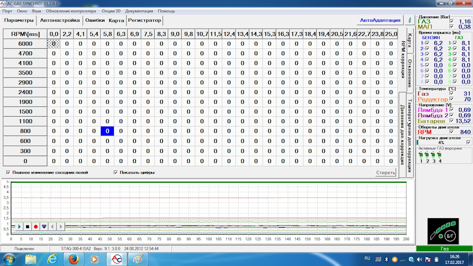 Вооооот наконец получил что хотел. После прошивки калибровку провел, ещё покатаемся коррекцию проведем, в целом движок ещё чуток ровнее и тише заработал, но самое главное из-за чего всё началось не победил. Сброс газа и нестабильная работа пару секунд имеется, как и было. Исправил повышением холостых оборотов с 800 до 860 об/мин. Теперь да, сбросил газ и ровно работает моторчик, а было сбросил пару секунд мы колеблемся и держим 800-820, теперь 840-860, но без колеблемся, думаю немножечко расход поднимется, совсем чуток, но глохнуть теперь не должен после сброса газа с дальней дороги.