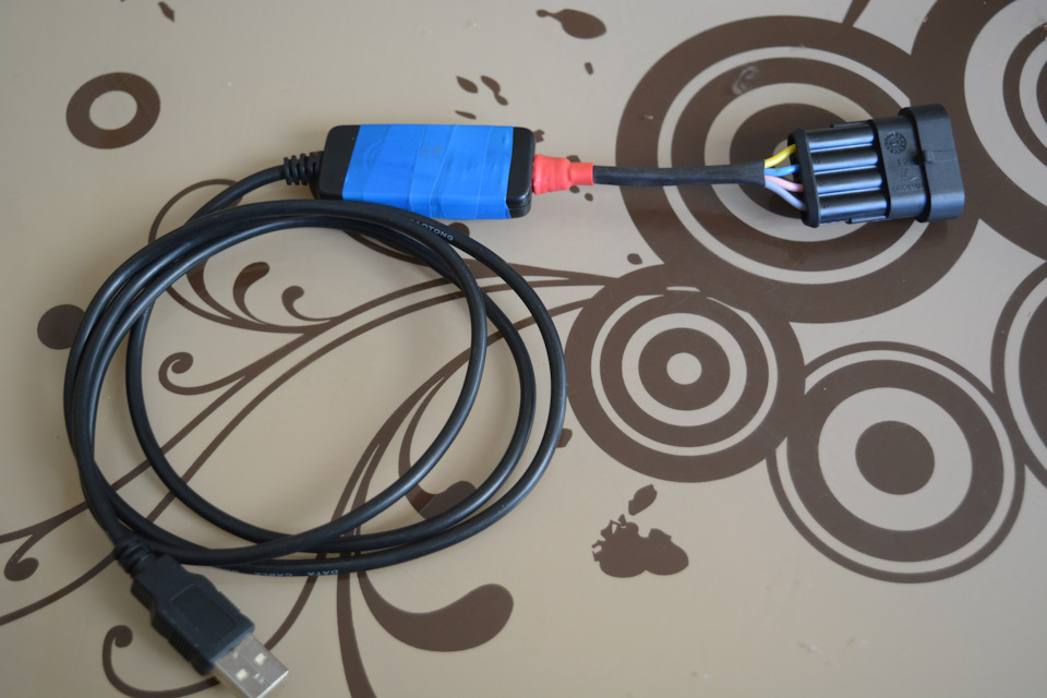 Подключаем ноутбук, находим порты, включаем программку и… ничего не происходит. Как же так, я же целых 15 минут кабель ваял, что-то не так? Опять разбирать? Опять перепаивать? Ну не мог я ошибиться, даже радовался что цвета проводов идеально совпали. Хорошо изолентой замотал, размотать можно, успокоил я себя и тут как ложкой по лбу — блин господин хороший, а вы зажигание включили?))) В общем запускаю я движок и всё как по маслу: